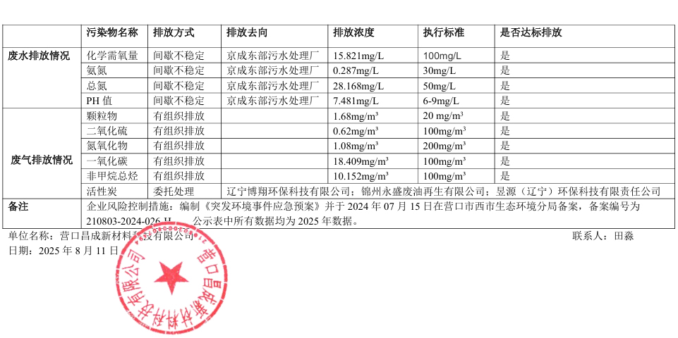 營口昌成新材料科技有限公司清潔生產信息公示