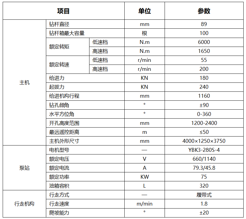 2.國內(nèi)首創(chuàng)全方位自動鉆機(jī),鉆機(jī)傾角、方位角、水平開孔高度可自動調(diào)節(jié),調(diào)節(jié)范圍大、操作方便安全。