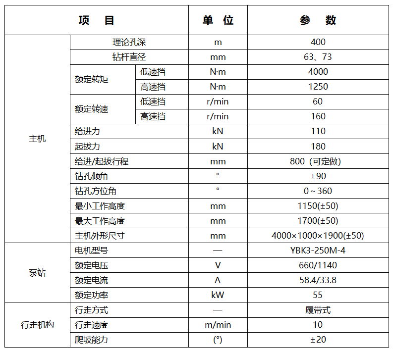 ZDY4000LP煤礦用履帶式全液壓坑道鉆機(jī)參數(shù)表